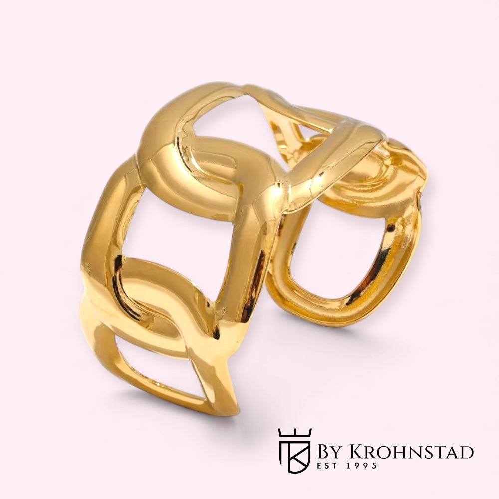 Stort statements armband i rostfritt stål pläterat i 18 karat guld.