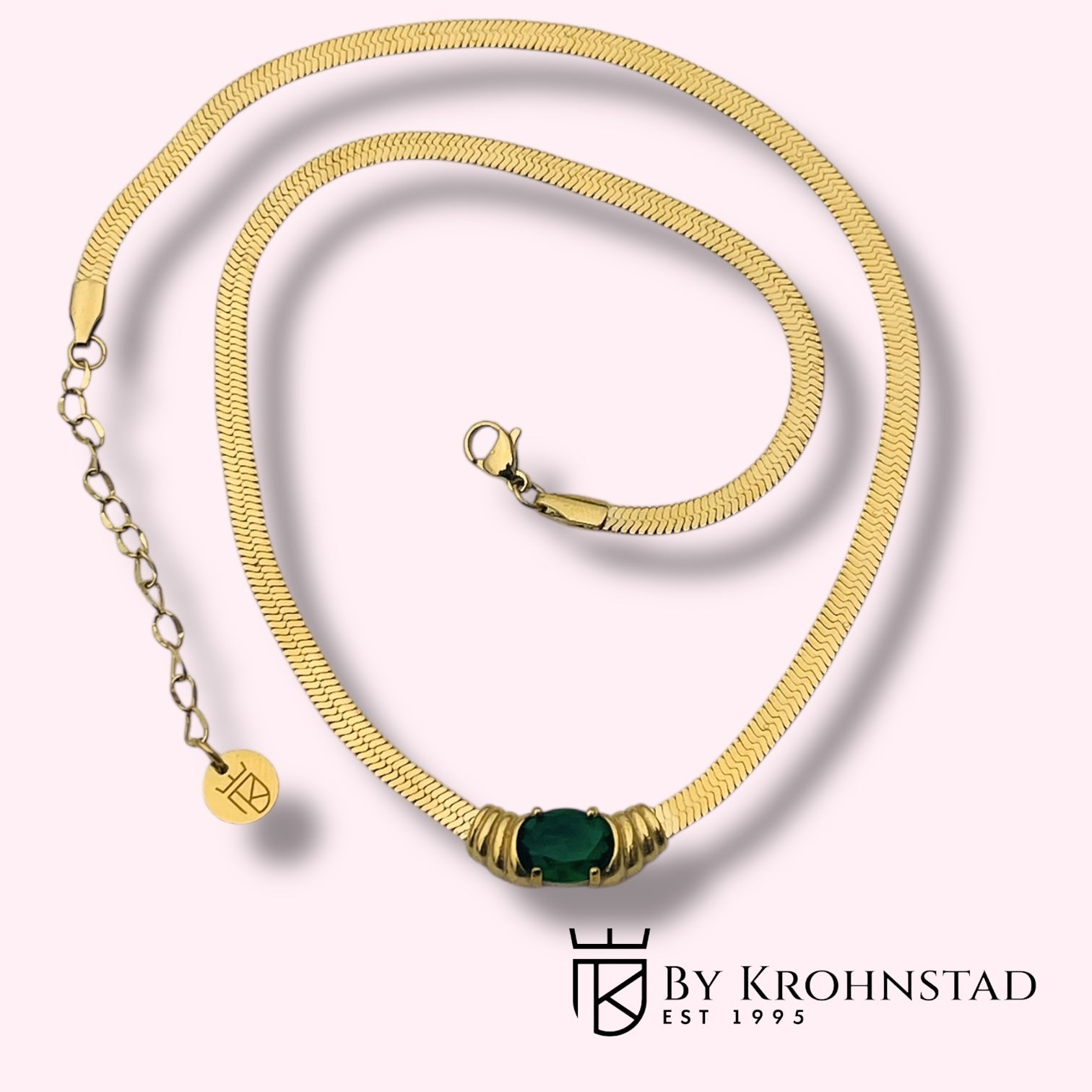 Alla smycken är tillverkade av Rostfritt Stål och har en 18K guldplätering. De är pläterade med den senaste terkniken som kallas PVD, vilket tilsammans med materialvalet gör alla smycken vattentåliga. När vi använder stenar är det Kubik Zirkonior vi använder. Pärlorna är syntetiska.