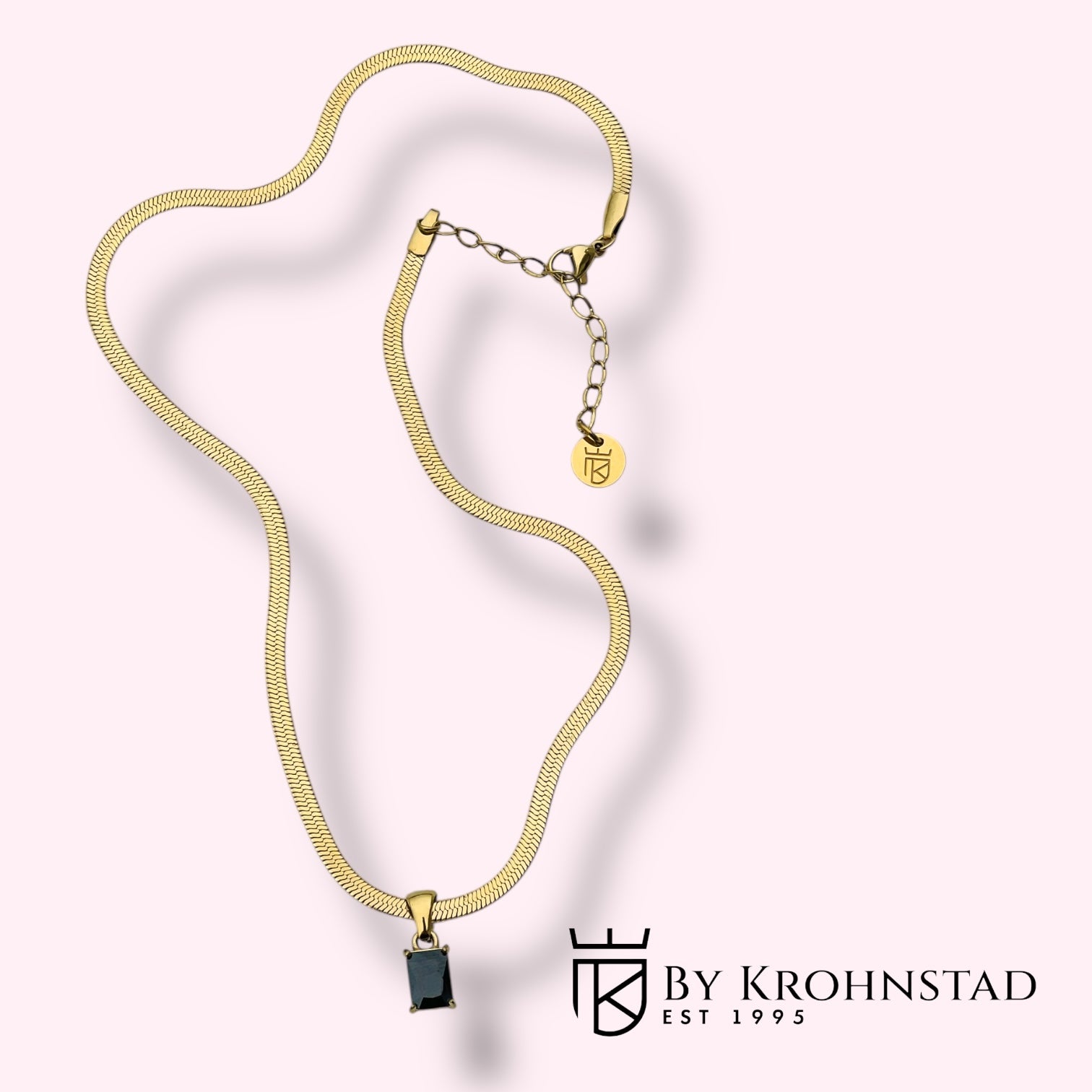 Detta halsband pryds av en liten fyrkantig kubik zirkon som sitter helt perfekt på halsen. Då kedjan är lite kortare hänger detta perfekt för att fånga alla blickar.
